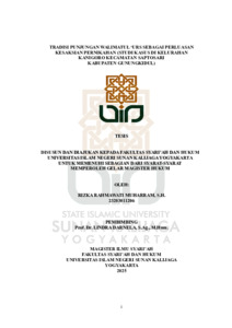 Rizka Rahmawati Muharram, S.H., NIM.: 23203011206 (2025) TRADISI PUNJUNGAN WALIMATUL ‘URS SEBAGAI PERLUASAN KESAKSIAN PERNIKAHAN (STUDI KASUS DI KELURAHAN KANIGORO KECAMATAN SAPTOSARI KABUPATEN GUNUNGKIDUL). Masters thesis, UIN SUNAN KALIJAGA YOGYAKARTA.