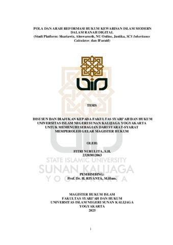 Text (POLA DAN ARAH REFORMASI HUKUM KEWARISAN ISLAM MODERN DALAM RANAH DIGITAL (STUDI PLATFORM: SHARIAWIZ, ALMWAREETH, NU ONLINE, JUSTIKA, SCS INHERITANCE CALCULATOR, DAN IFARAID))
