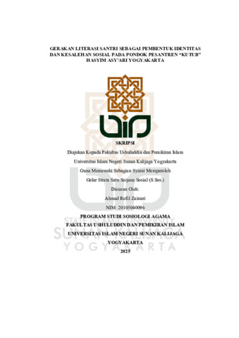 Text (GERAKAN LITERASI SANTRI SEBAGAI PEMBENTUK IDENTITAS DAN KESALEHAN SOSIAL PADA PONDOK PESANTREN “KUTUB” HASYIM ASY’ARI YOGYAKARTA)