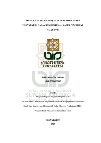 Text (MANAJEMEN PROGRAM QUR’AN LEARNING CENTER YOGYAKARTA DALAM PEMBENTUKAN KADER PENGHAFAL AL-QUR’AN)