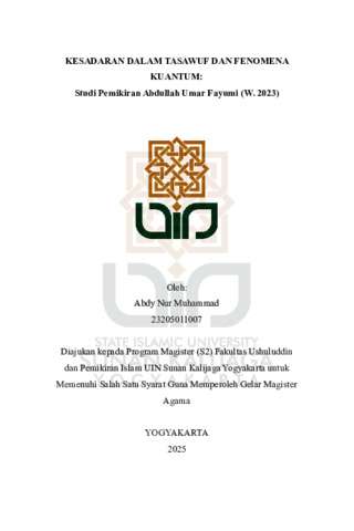 Abdy Nur Muhammad, NIM.: 23205011007 (2025) KESADARAN DALAM TASAWUF DAN FENOMENA KUANTUM: STUDI PEMIKIRAN ABDULLAH UMAR FAYUMI (W. 2023). Masters thesis, UIN SUNAN KALIJAGA YOGYAKARTA.