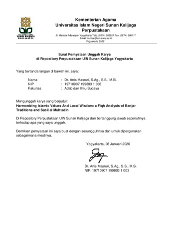 Harmonizing Islamic Values And Local Wisdom A Fiqh Analysis Of Banjar Traditions In Sabil Al-Muhtadin.pdf - Published Version Download (320kB) | Preview |