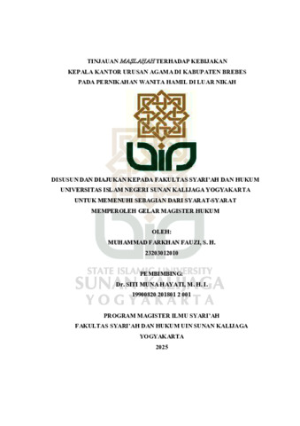 Text (TINJAUAN MASLAHAH TERHADAP KEBIJAKAN KEPALA KANTOR URUSAN AGAMA DI KABUPATEN BREBES PADA PERNIKAHAN WANITA HAMIL DI LUAR NIKAH)