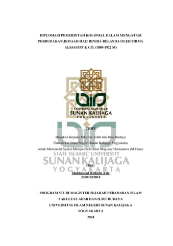 Text (DIPLOMASI PEMERINTAH KOLONIAL DALAM MENGATASI PERBUDAKAN JEMAAH HAJI HINDIA BELANDA OLEH FIRMA ALSAGOFF & CO. (1880-1922 M))