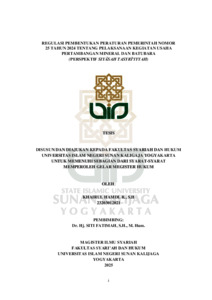 Khairul Hamdi. R, S.H, NIM.: 23203012021 (2025) REGULASI PEMBENTUKAN PERATURAN PEMERINTAH NOMOR 25 TAHUN 2024 TENTANG PELAKSANAAN KEGIATAN USAHA PERTAMBANGAN MINERAL DAN BATUBARA (PERSPEKTIF SIYASAH TASYRI’IYYAH). Masters thesis, UIN SUNAN KALIJAGA YOGYAKARTA.