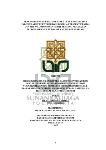 Text (PENETAPAN UJRAH BANCASSURANCE DI PT BANK SYARIAH INDONESIA KCP PURWOKERTO SUDIRMAN (PERSPEKTIF FATWA DSN-MUI NO.139/DSN-MUI/VIII/2021 TENTANG PEMASARAN PRODUK ASURANSI BERDASARKAN PRINSIP SYARIAH)