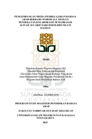 Abd Muiz, NIM.: 23204021039 (2025) PENGEMBANGAN MEDIA PEMBELAJARAN BAHASA ARAB BERBASIS WORDWALL DENGAN PENDEKATAN KOLABORATIF DI MADRASAH ALIYAH MA'ARIF DARUSSHOLIHIN MLATI SLEMAN. Masters thesis, UIN SUNAN KALIJAGA YOGYAKARTA.