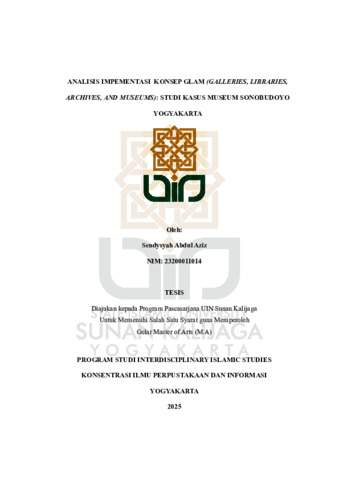 Text (ANALISIS IMPEMENTASI KONSEP GLAM (GALLERIES, LIBRARIES, ARCHIVES, AND MUSEUMS): STUDI KASUS MUSEUM SONOBUDOYO YOGYAKARTA)