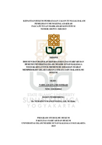 Nabila Hasna Musyfirah, NIM.: 21103040062 (2025) KEPASTIAN HUKUM PEMBATASAN CALON TUNGGAL DALAM PEMILIHAN UMUM KEPALA DAERAH PASCA PUTUSAN MAHKAMAH KONSTITUSI NOMOR 100/PUU-XIII/2015. Skripsi thesis, UIN SUNAN KALIJAGA YOGYAKARTA.