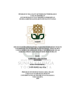 | Uncontrolled Keywords: | perjodohan; pernikahan; kafa’ah; maqaşid asy-syari’ah. |