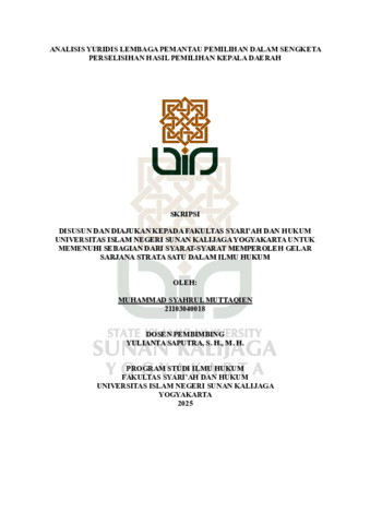 Muhammad Syahrul Muttaqien, NIM.: 21103040018 (2025) ANALISIS YURIDIS LEMBAGA PEMANTAU PEMILIHAN DALAM SENGKETA PERSELISIHAN HASIL PEMILIHAN KEPALA DAERAH. Skripsi thesis, UIN SUNAN KALIJAGA YOGYAKARTA.