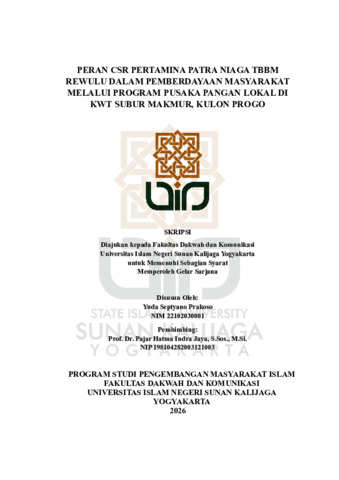 Text (PERAN CSR PERTAMINA PATRA NIAGA TBBM REWULU DALAM PEMBERDAYAAN MASYARAKAT MELALUI PROGRAM PUSAKA PANGAN LOKAL DI KWT SUBUR MAKMUR, KULON PROGO)