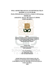 Muhammad Ilyas Darmawan, NIM.: 23202012011 (2026) POLA KOMUNIKASI DALAM MENINGKATKAN KEPERCAYAAN PUBLIK PADA PENGELOLAAN DANA ZAKAT, INFAQ dan SEDEKAH di BAITUL MAAL MUAMALAT (BMM) YOGYAKARTA. Masters thesis, UIN SUNAN KALIJAGA YOGYAKARTA.
