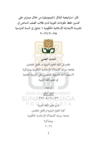 Dwi Aryani, NIM.: 22104020077 (2026) تأثير استراتيجية التذكر )المنيمونيك( من خلال ميمرايز على تحسين حفظ المفردات العربية لدى طلاب الصف السادس في المدرسة الابتدائية الإسلامية الحكومية 1 بانت ول في السنة الدراسية ٢٠٢٦/٢٠٢٥ (TA'THIR ISTIRATIJIYAH AT-TADHAKKUR (AL-MINIMONIK) MIN KHILAL MIMRAYZ 'ALA TAHSIN HIFZ AL-MUFRADAT AL-'ARABIYAH LADA TULLAB AS-SAFF AS-SADIS FI AL-MADRASAH AL-IBTIDA'IYAH AL-ISLAMIYAH AL-HUKUMIYAH 1 BANTUL FI AS-SANAH AD-DIRASIYAH 2026/2025). Skripsi thesis, UIN SUNAN KALIJAGA YOGYAKARTA.