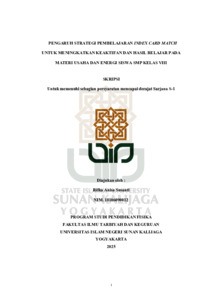 Rifka Anisa Susanti, NIM.: 18106090012 (2025) PENGARUH STRATEGI PEMBELAJARAN INDEX CARD MATCH UNTUK MENINGKATKAN KEAKTIFAN DAN HASIL BELAJAR PADA MATERI USAHA DAN ENERGI SISWA SMP KELAS VIII. Skripsi thesis, UIN SUNAN KALIJAGA YOGYAKARTA.