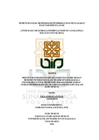 Text (PEMENUHAN HAK MEMPEROLEH PENDIDIKAN DAN PENGAJARAN BAGI NARAPIDANA ANAK (STUDI KASUS DI LEMBAGA PEMBINAAN KHUSUS ANAK (LPKA) KELAS II YOGYAKARTA))