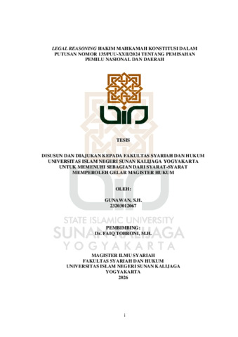 Gunawan, NIM.: 23203012067 (2026) LEGAL REASONING HAKIM MAHKAMAH KONSTITUSI DALAM PUTUSAN NOMOR 135/PUU-XXII/2024 TENTANG PEMISAHAN PEMILU NASIONAL DAN DAERAH. Masters thesis, UIN SUNAN KALIJAGA YOGYAKARTA.