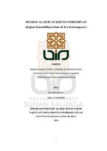 | Uncontrolled Keywords: | Mushaf Al-Qur’an Khusus Perempuan, Komodifikasi Islam, Eera Kontemporer |