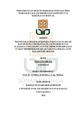 Niswatin Hilma, NIM.: 21103040120 (2026) PERLINDUNGAN HUKUM TERHADAP JURNALIS PERS MAHASISWA DALAM KRIMINALISASI PELIPUTAN KEKERASAN SEKSUAL. Skripsi thesis, UIN SUNAN KALIJAGA YOGYAKARTA.