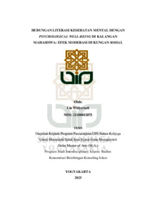Lia Widyawati, NIM.: 21200012072 (2025) HUBUNGAN LITERASI KESEHATAN MENTAL DENGAN PSYCHOLOGICAL WELL-BEING DI KALANGAN MAHASISWA: EFEK MODERASI DUKUNGAN SOSIAL. Masters thesis, UIN SUNAN KALIJAGA YOGYAKARTA.
