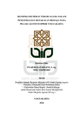 Fuad Reza Pahlevi, NIM.: 23205021001 (2026) SIGNIFIKANSI PERAN TOKOH AGAMA DALAM PENGENDALIAN KENAKALAN REMAJA PADA PELAKU KLITIH DI BPRSR YOGYAKARTA. Masters thesis, UIN SUNAN KALIJAGA YOGYAKARTA.