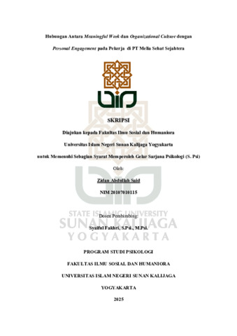 Text (HUBUNGAN ANTARA MEANINGFUL WORK DAN ORGANIZATIONAL CULTURE DENGAN PERSONAL ENGAGEMENT PADA PEKERJA DI PT MELIA SEHAT SEJAHTERA)