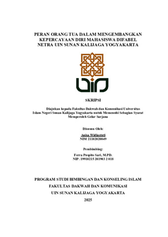 Text (PERAN ORANG TUA DALAM MENGEMBANGKAN KEPERCAYAAN DIRI MAHASISWA DIFABEL NETRA UIN SUNAN KALIJAGA YOGYAKARTA)
