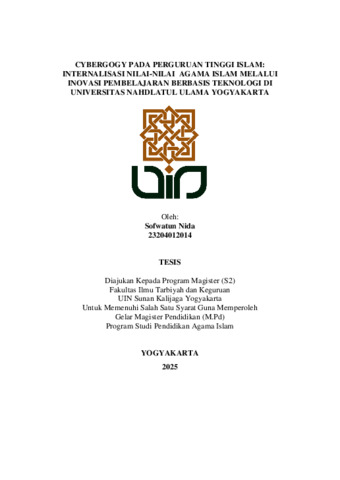 Text (CYBERGOGY PADA PERGURUAN TINGGI ISLAM: INTERNALISASI NILAI-NILAI AGAMA ISLAM MELALUI INOVASI PEMBELAJARAN BERBASIS TEKNOLOGI DI UNIVERSITAS NAHDLATUL ULAMA YOGYAKARTA)
