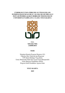 Sofwatun Nida, NIM.: 23204012014 (2025) CYBERGOGY PADA PERGURUAN TINGGI ISLAM: INTERNALISASI NILAI-NILAI AGAMA ISLAM MELALUI INOVASI PEMBELAJARAN BERBASIS TEKNOLOGI DI UNIVERSITAS NAHDLATUL ULAMA YOGYAKARTA. Masters thesis, UIN SUNAN KALIJAGA YOGYAKARTA.