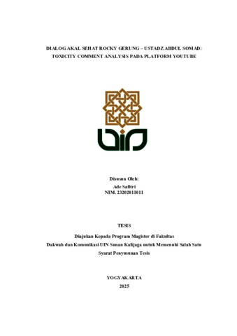 Ade Safitri, NIM.: 23202011011 (2026) DIALOG AKAL SEHAT ROCKY GERUNG USTADZ ABDUL SOMAD: TOXICITY COMMENT ANALYSIS PADA PLATFORM YOUTUBE. Masters thesis, UIN SUNAN KALIJAGA YOGYAKARTA.