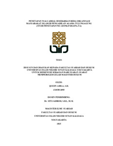 Queen Adila, S.H., NIM.: 23203012093 (2026) PENETAPAN WALI ADHAL DISEBABKAN BEDA ORGANISASI MASYARAKAT ISLAM DI PENGADILAN AGAMA TULUNGAGUNG (STUDI PENETAPAN NO 245/Pdt.P/2024/PA.TA). Masters thesis, UIN SUNAN KALIJAGA YOGYAKARTA.