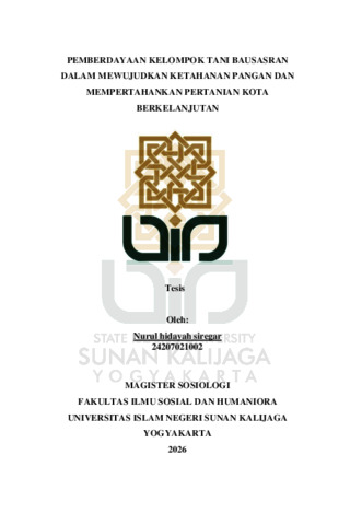 Nurul Hidayah Siregar, NIM.: 24207021002 (2026) PEMBERDAYAAN KELOMPOK TANI BAUSASRAN DALAM MEWUJUDKAN KETAHANAN PANGAN DAN MEMPERTAHANKAN PERTANIAN KOTA BERKELANJUTAN. Masters thesis, UIN SUNAN KALIJAGA YOGYAKARTA.