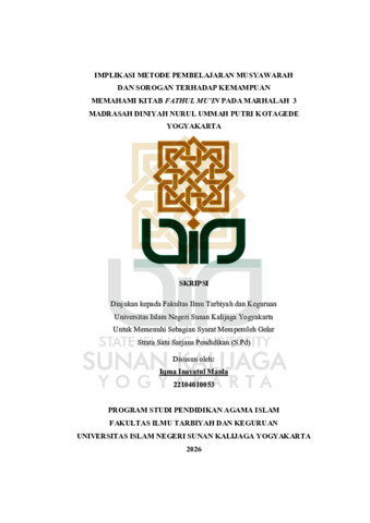 Text (IMPLIKASI METODE PEMBELAJARAN MUSYAWARAH DAN SOROGAN TERHADAP KEMAMPUAN MEMAHAMI KITAB FATHUL MU’IN PADA MARHALAH 3 MADRASAH DINIYAH NURUL UMMAH PUTRI KOTAGEDE YOGYAKARTA)