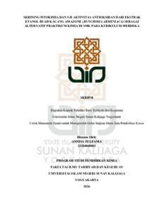 Annisa Zulfania, NIM.: 22104060002 (2026) SKRINING FITOKIMIA DAN UJI AKTIVITAS ANTIOKSIDAN DARI EKSTRAK ETANOL BUAH KACANG AMAZONE (BUNCHOSIA ARMENIACA) SEBAGAI ALTERNATIF PRAKTIKUM KIMIA DI SMK PADA KURIKULUM MERDEKA. Skripsi thesis, UIN SUNAN KALIJAGA YOGYAKARTA.