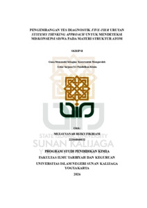 Muzayyanah Rizky Fikriani, NIM.: 22104060032 (2026) PENGEMBANGAN TES DIAGNOSTIK FIVE-TIER URUTAN SYSTEMS THINKING APPROACH UNTUK MENDETEKSI MISKONSEPSI SISWA PADA MATERI STRUKTUR ATOM. Skripsi thesis, UIN SUNAN KALIJAGA YOGYAKARTA.