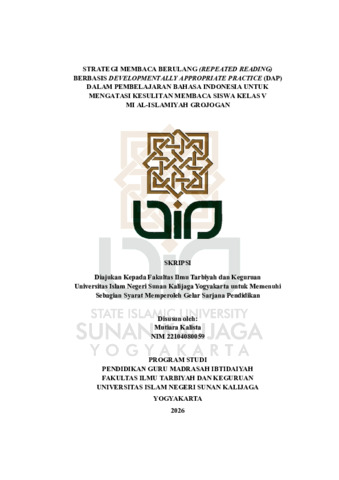 Text (STRATEGI MEMBACA BERULANG (REPEATED READING) BERBASIS DEVELOPMENTALLY APPROPRIATE PRACTICE (DAP) DALAM PEMBELAJARAN BAHASA INDONESIA UNTUK MENGATASI KESULITAN MEMBACA SISWA KELAS V MI AL-ISLAMIYAH GROJOGAN)