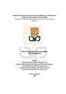 Muhammad Afrizal Sauqi Billah, NIM.: 23204012026 (2026) IMPLEMENTASI PROGRAM QAILULAH DAN IMPLIKASINYA TERHADAP DAYA HAFAL DAN FOKUS BELAJAR PESERTA DIDIK (STUDI KASUS MADRASAH IBTIDAIYAH TERPADU NURUSSALAM LATANSA MUNTILAN). Masters thesis, UIN SUNAN KALIJAGA YOGYAKARTA.