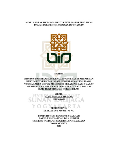 Aldy Komara Bintang, NIM.: 22103080029 (2026) ANALISIS PRAKTIK BISNIS MULTI LEVEL MARKETING TIENS DALAM PERSPEKTIF MAQASID ASY-SYARI‘AH. Skripsi thesis, UIN SUNAN KALIJAGA YOGYAKARTA.