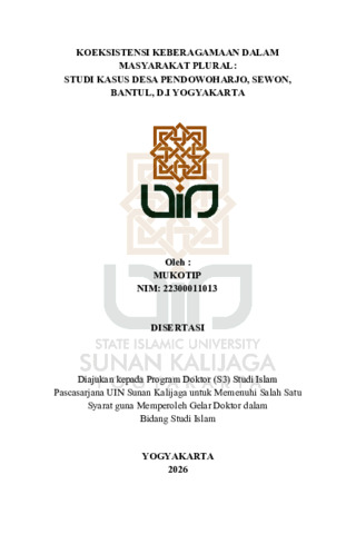 Mukotip, NIM.: 22300011013 (2026) KOEKSISTENSI KEBERAGAMAAN DALAM MASYARAKAT PLURAL: STUDI KASUS DESA PENDOWOHARJO, SEWON, BANTUL, D.I YOGYAKARTA. Doctoral thesis, UIN SUNAN KALIJAGA YOGYAKARTA.