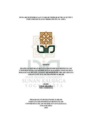 Umay Shafira, NIM.: 21108010116 (2026) PENGARUH PEMBIAYAAN SYARIAH TERHADAP NILAI OUTPUT INDUSTRI KECIL DAN MIKRO DI PULAU JAWA. Skripsi thesis, UIN SUNAN KALIJAGA YOGYAKARTA.
