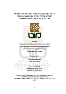 Amira Fathina Zahra, NIM.: 22102020019 (2026) HUBUNGAN ANTARA SELF-MANAGEMENT DAN STRES AKADEMIK SISWA TINGKAT MTS DI MADROSATUL QUR’AN AL FALAK. Skripsi thesis, UIN SUNAN KALIJAGA YOGYAKARTA.