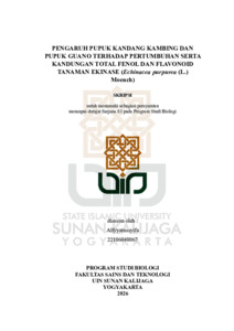 Alfyyatussyifa, NIM.: 22106040067 (2026) PENGARUH PUPUK KANDANG KAMBING DAN PUPUK GUANO TERHADAP PERTUMBUHAN SERTA KANDUNGAN TOTAL FENOL DAN FLAVONOID TANAMAN EKINASE (Echinacea purpurea (L.) Moench). Skripsi thesis, UIN SUNAN KALIJAGA YOGYAKARTA.