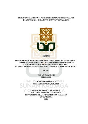 Text (PERLINDUNGAN HUKUM PEKERJA PEREMPUAN SHIFT MALAM DI APOTEK K-24 RAYA JANTI BANTUL YOGYAKARTA)