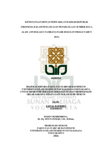 Zainal Hafidhin, NIM.: 21103040152 (2026) KEWENANGAN DEWAN PERWAKILAN DAERAH REPUBLIK INDONESIA DALAM PENGAWASAN PENGELOLAAN SUMBER DAYA ALAM (STUDI KASUS TAMBANG PASIR DI KULON PROGO TAHUN 2021). Skripsi thesis, UIN SUNAN KALIJAGA YOGYAKARTA.