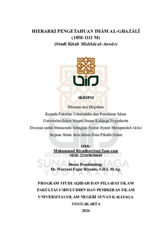 Muhammad Riyadhurrizqi Zam-Zam, NIM.: 22105010049 (2026) HIERARKI PENGETAHUAN IMAM AL GHAZALI (1058–1111 M) (STUDI KITAB MISHKAT AL ANWAR). Skripsi thesis, UIN SUNAN KALIJAGA YOGYAKARTA.