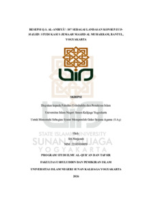 Siti Nurjanah, NIM.: 22105030059 (2026) RESEPSI Q.S. AL-ANBIYA’: 107 SEBAGAI LANDASAN KONSEP ECO-MASJID: STUDI KASUS JEMAAH MASJID AL MUHARRAM, BANTUL, YOGYAKARTA. Skripsi thesis, UIN SUNAN KALIJAGA YOGYAKARTA.