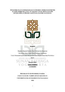 Nadia Ulfadillah, NIM.: 22104060003 (2026) PENGEMBANGAN LEMBAR KEGIATAN PESERTA DIDIK ELEKTRONIK (E-LKPD) BERBASIS LEVEL OF INQUIRY UNTUK MENGANALISIS KETERAMPILAN PROSES SAINS PADA MATERI ASAM BASA. Skripsi thesis, UIN SUNAN KALIJAGA YOGYAKARTA.