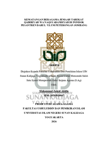 Muhammad Zainul Abidin, NIM.: 20105020047 (2026) KEMATANGAN BERAGAMA JEMAAH TAREKAT QADIRIYAH WA NAQSYABANDIYAH DI PONDOK PESANTREN DARUL ‘ULUM PETERONGAN JOMBANG. Skripsi thesis, UIN SUNAN KALIJAGA YOGYAKARTA.