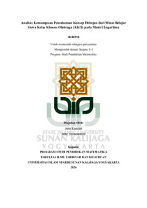 Arini Kamilah, NIM.: 20104040030 (2026) ANALISIS KEMAMPUAN PEMAHAMAN KONSEP DITINJAU DARI MINAT BELAJAR SISWA KELAS KHUSUS OLAHRAGA (KKO) PADA MATERI LOGARITMA. Skripsi thesis, UIN SUNAN KALIJAGA YOGYAKARTA.