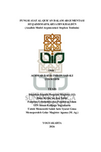 Achmad Dafid Imron Sadali, NIM.: 23205032050 (2026) FUNGSI AYAT AL-QUR’AN DALAM ARGUMENTASI MUQADDIMAH KARYA IBN KHALDŪN (ANALISIS MODEL ARGUMENTASI STEPHEN TOULMIN). Masters thesis, UIN SUNAN KALIJAGA YOGYAKARTA.